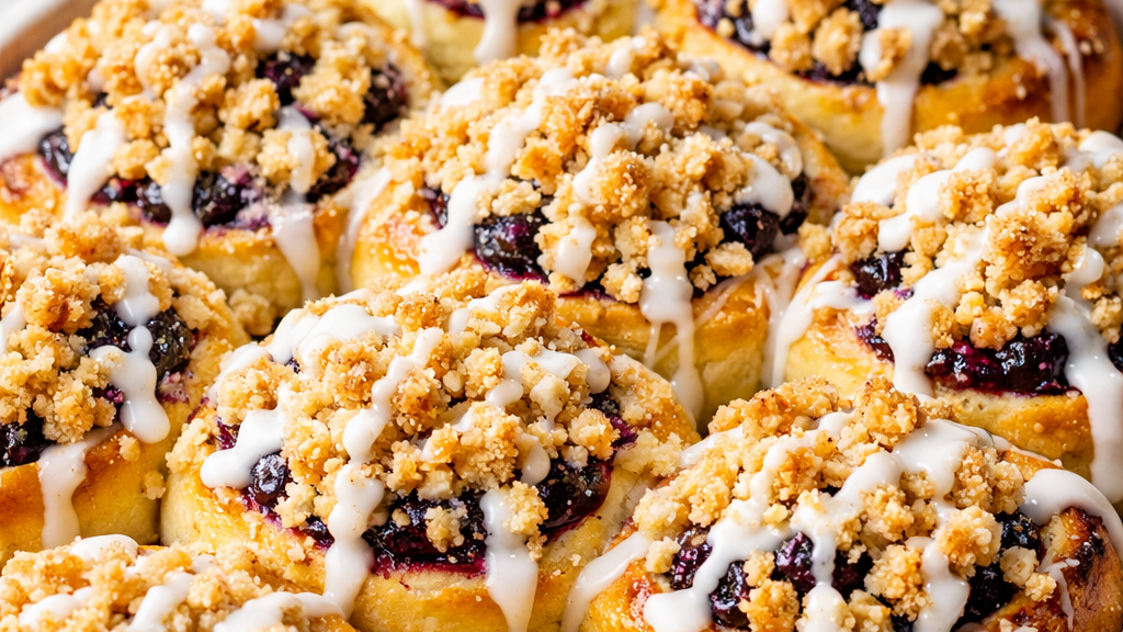 Each bite is layered with flavor. Fresh lemon zest baked right into the dough, juicy blueberries tucked into every swirl, and the best crumble that adds just the right amount of crunch.