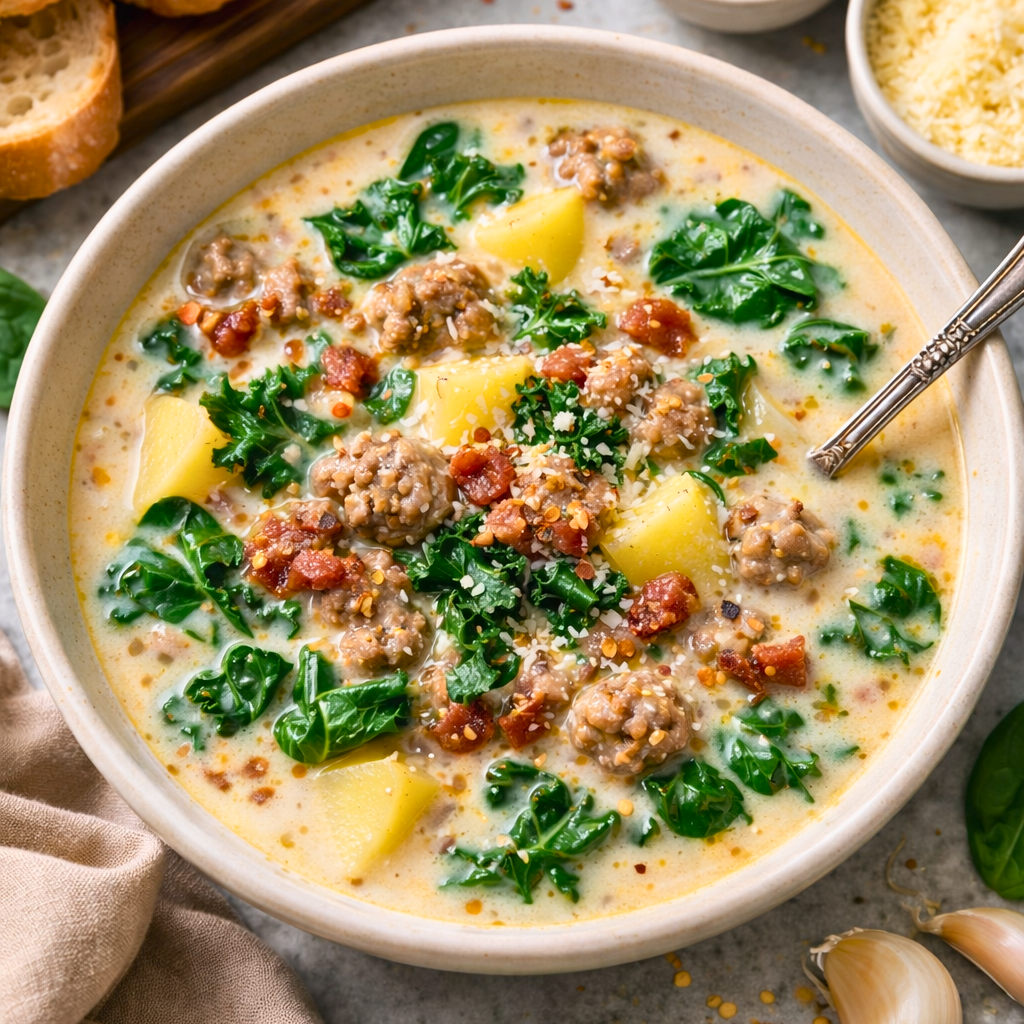 Creamy Zuppa toscana soup with spinach